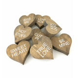 Set of 4 solid wood conversation hearts | Measures 5 3/4” W x 5 1/2” H