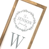 12x60 wood framed porch board | Customize with family name and your choice of black or white background