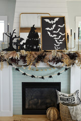 Wooden bat garland about 6 ft long. Each bat measures 6" wide.