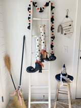 72" (6 foot) orange, black & white felt ball garland with witch hats