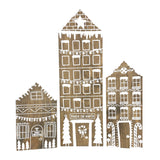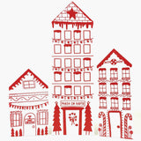 Set of three hand-drawn holiday wood houses in your choice of stain or white finish