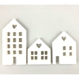 Wood cutout window houses in your choice of red or white finish | Purchase your favorites individually or as a set of three