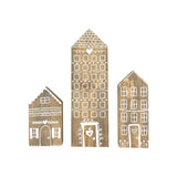 Set of three hand-drawn wood houses in your choice of white or stain finish