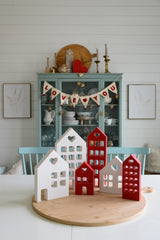 Wood cutout window houses in your choice of red or white finish | Purchase your favorites individually or as a set of three