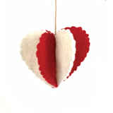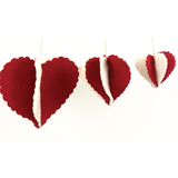 Red and white scalloped felt hanging hearts | Available in three sizes: Small (5") Medium (7") and Large (9")