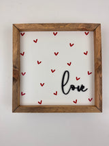 This dimensional “Love” art features a raised, cursive love script layered over a soft heart pattern background, creating depth and visual interest that draws the eye. Framed in solid wood, this piece balances playful Valentine charm with a modern, minimalist feel that’s easy to style year after year.