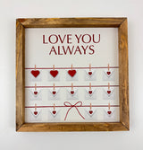 This heartfelt Valentine countdown is a meaningful way to celebrate love leading up to February 14. Featuring soft envelope artwork, delicate string details, and movable heart magnets, this framed piece allows you to count down the days with intention—one heart at a time.
