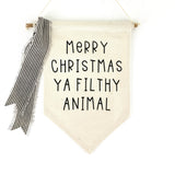 9x9 Canvas pennant with string to hang and coordinating ribbon | Available in red, green or black design